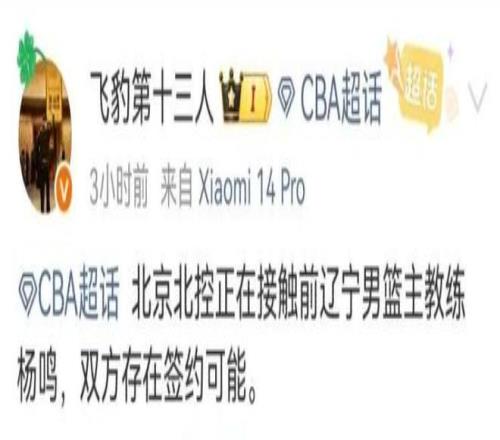 自从杨鸣在辽宁男篮卸任了主教练的职务后,又开始进行赛事解说。从在辽宁男篮执教的履历来看,杨鸣的执教能力还是非常不错的,带队完成过三连冠。辽宁男篮本赛季的表现有些糟糕,作为主教练的杨鸣虽然难辞其咎,但更重要的是球队的阵容问题比较大。在媒体人杨毅透露出有球队在接触杨鸣的消息后,这件事有了最新进展。据知情人透露,接触杨鸣的球队是北控男篮,双方存在签约的可能性。