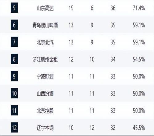 广东掉队,山东紧追前3,北京再次下滑辽篮重回前12,3黑马抢眼