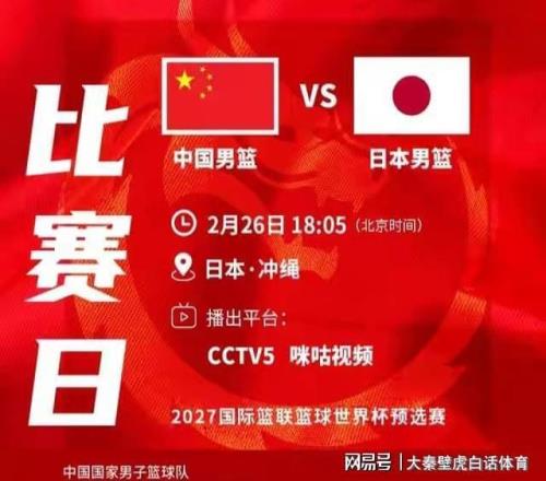 北京时间2月26日(今晚),中国男篮vs日本队生死战,央视CCTV5以及各大网络平台同步直播,一起见证这场“中日”对决!