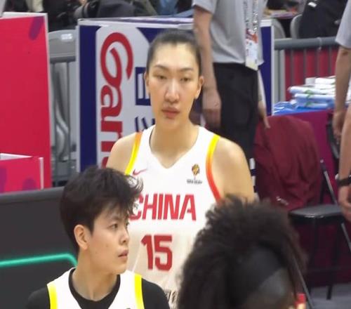 进入到第四节:中国队换上双塔组合:张子宇打5号位,韩旭4号位,罗欣棫3号位,杨舒予和王佳琦打后卫。——张子宇、韩旭二人连续拿分:中国队持续保持冲击力。
