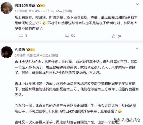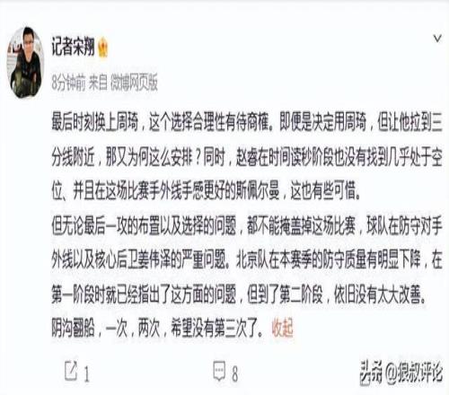 篮球记者贾磊发文点评: