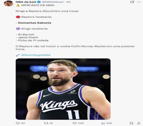 关于多伦多猛龙与萨克拉门托国王之间涉及全明星中锋多曼塔斯·萨博尼斯的交易讨论,近期在NBA交易截止日前变得密集,综合多家媒体报道,交易框架已初步浮现,但最终能否成行仍存在变数。