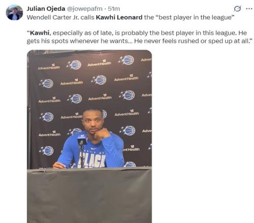 赛后小卡特在接受采访时谈到卡哇伊:他如今就是联盟最出色的球员之一。他总能在球队需要他时扛起球队,他从不紧张也不慌乱。