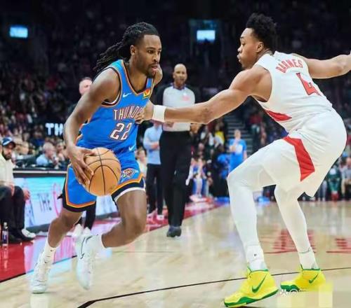 西部领头羊俄克拉荷马雷霆做客多伦多,挑战拥有“北境四核”的猛龙。在亚历山大、杰伦·威廉姆斯两大得分核心继续作壁上观的情况下,雷霆一度手握25分优势,末节却险些被抹平。最终,凭借22号小将卡森·华莱士生涯平纪录的27分8篮板6助攻,以及卡鲁索全场最高的+22正负值,雷霆以116-107险胜,拿下三连胜。这场比赛不仅是一场胜利,更像是一场提前进行的“身价拍卖会”——有人证明了为何他是强队拼图,有人则直接把续约合同的价格打上了天。
