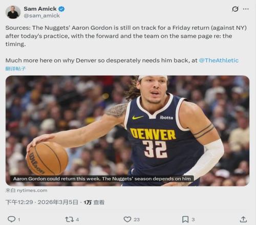 北京时间3月5日,丹佛掘金队迎来两个好消息:1、球队与大卫-罗迪签下双向合同,同时裁掉塔马尔-贝茨;2、阿隆-戈登将在后天和尼克斯的比赛中正式复出。大卫-罗迪是2022年首轮23号秀,身高1米96,NBA生涯场均6.2分2.9板1助。