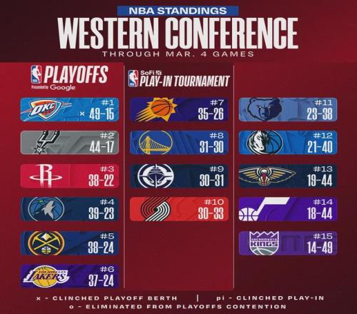 最后看看西部排名,你觉得哪两支球队能会师西决?