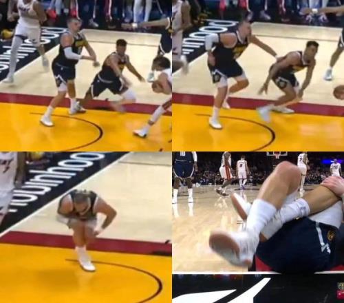 戈登之外,约基奇也遭遇了伤病,而且与穆雷有些相似的是,约基奇的伤病也是被队友误伤——此前对阵热火比赛,斯宾塞琼斯在一次防守里踩到了约基奇,导致约基奇膝盖外翻,为此他缺席了16场比赛。