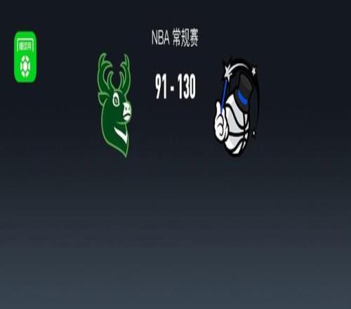 第四节雄鹿小特伦特拿下5分,魔术贾马尔-凯恩拿下8分,最终雄鹿91-130不敌魔术