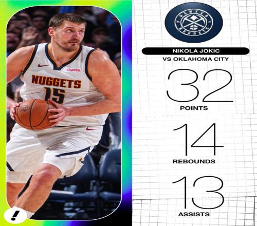 64秒续命9分神奇3+1绝平!约基奇创5纪录拒背锅关键球不输SGA