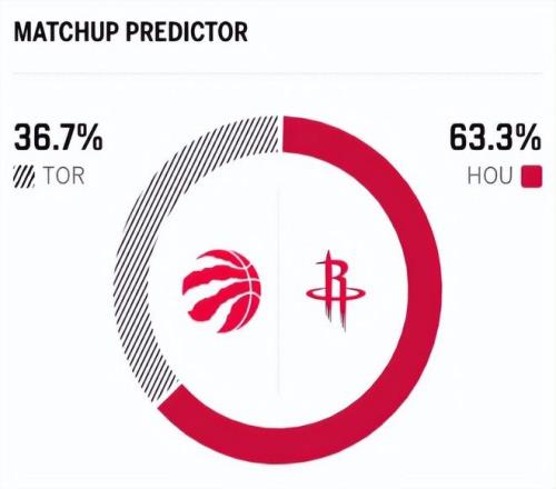赛前,美媒ESPN对本场比赛进行了胜率预测,火箭队胜率高达63.3%,猛龙胜率则仅有36.7% ,差距还挺明显。
