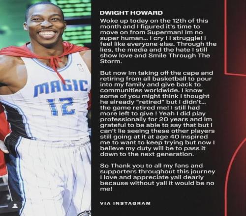 不打了!霍华德宣布退役!正式结束NBA生涯