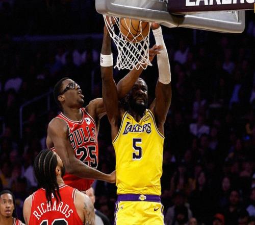 老詹冲击暴扣,随后抢断助东契奇轰三分。里夫斯和东契奇轮流上篮打进,八村塁也续上三分球,湖人拉开两位数分差。中段詹姆斯躲闪拉开上篮+抢断反击喂饼里夫斯,东契奇+里夫斯连中三分,詹姆斯反击重扣,湖人最多领先22分!但从后半段起,湖人攻防转换太慢,内线顶不住冲击,对公牛持球人压迫不够,被公牛连续追分,全靠东契奇撑着。三节打完,湖人108-98领先。决战第四节,肯纳德关键三分命中后,基迪联合特雷琼斯一路追到只差7分。里夫斯又中超远三分球稳定节奏,此后里夫斯拜佛跳投再中。