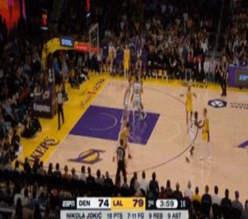 这边一投丢,那边快速上球,被湖人反攻