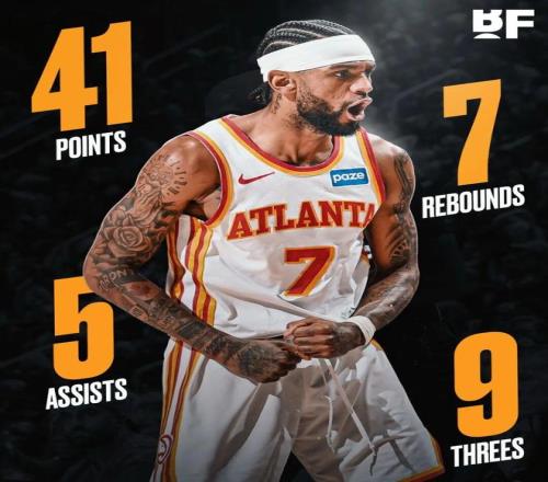 杰伦-约翰逊又拿三双了,24分15篮板13助攻,常规操作。约基奇说要为他看球,不是没道理。