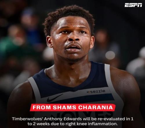 记者Shams报道消息,爱德华兹右膝出现炎症,后续1到2周进行复查。