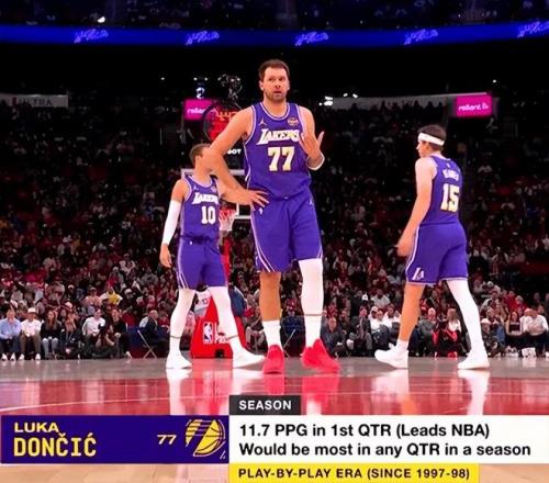 东契奇首节13分后,他又创纪录了,本赛季首节场均11.7分,是有记录以来单节场均得分最多的球员(97-98赛季)。