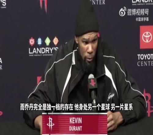 3月22日消息,3月22日结束的NBA常规赛中,火箭以123-122力克热火。本场比赛,杜兰特以32293分超越了迈克尔-乔丹,成为NBA历史得分榜第5人。赛后采访时,杜兰特表示乔丹来自另一个星球,是自己仰望的偶像。