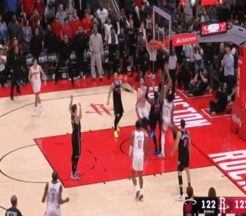 杜兰特死神降临失败,阿门高高跃起将球补进扮演救世主。