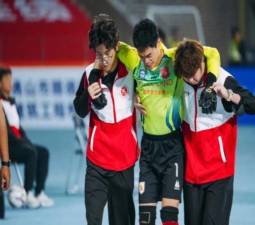 然而,这位守门员并未选择离场,在接受现场医疗团队冰敷处理后,强忍伤痛重新回到赛场,继续完成后续比赛。谈及带伤坚守的原因,区志东笑着说道:“不想第一次踏上这个赛场就被抬着下场,球队需要我的时候,必须扛住。”简单的话语,尽显责任与担当。