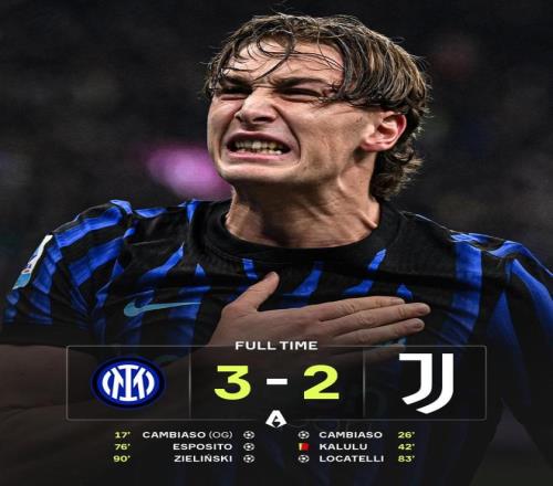 第91分钟,迪乌夫推进分球,比塞克横传,泽林斯基弧顶外迎球怒射破门,国际米兰3-2!读秒绝杀!随着这场胜利,国米各项赛事6连胜,在多赛一场的情况下领先AC米兰8分,牢牢掌握争冠主动权。