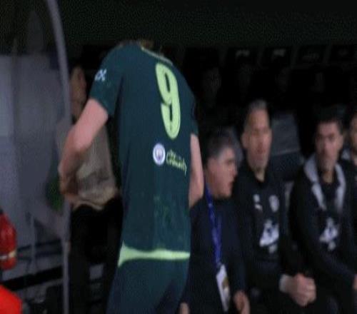 第16分钟,B席开出战术角球,塞门约跑出空位脚下打滑倒地