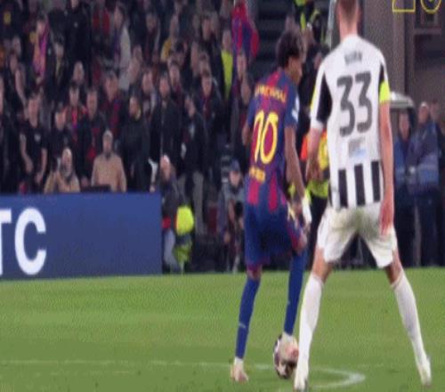 第45+7分钟,特里皮尔放倒拉菲尼亚吃到黄点套餐,亚马尔操刀命中,巴萨3-2!