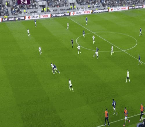 下半场开始只有4分钟,凯恩禁区内接球,面对两人包夹,凯恩在倒地前完成射门,皮球应声入网。