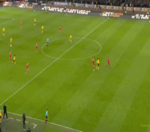 第78分钟,布埃诺后场长传,范戴克解围踢空,阿罗科达雷送出妙传,罗德里戈-戈麦斯单刀杀入禁区,扛住科纳特挑射得手,狼队打破僵局,1-0!