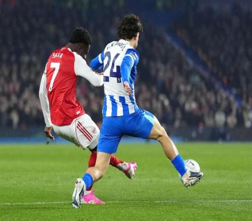 3球4助攻,萨卡生涯英超对阵布莱顿造7球所有对手第三多