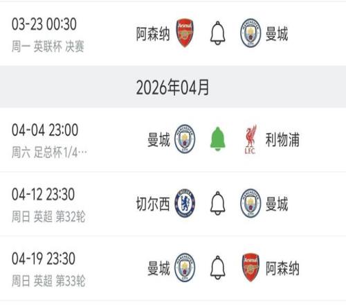 3月最后一个比赛日,曼城将在英联杯决赛里迎战阿森纳,随后将会进入国际比赛日,决定最后6个世界杯席位的归属。