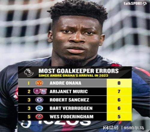 试想下,曼联自2023年以5020万欧元的转会费签下奥纳纳以来,就伴随着五花八门的质疑论,纵然以“现代门将”的身份将弗格森的爱徒德赫亚挤到替补席上,然而屡见不鲜的低级失误早就冲刷了所谓的期望。