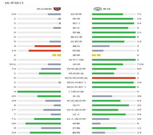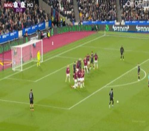 第31分钟,B席禁区左路吊射破门,曼城1-0西汉姆联