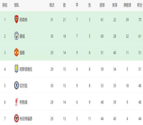 一场11!让曼城争冠无望:阿森纳领先9分,后7轮4胜1平夺冠
