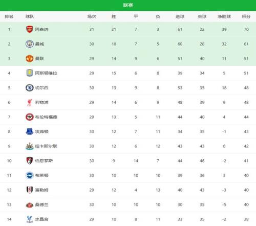 最终阿森纳2-0取胜,迎来联赛4连胜。在多赛1场的情况下,他们将领先优势扩大到9分,看来枪手久违的英超冠军要来啦!