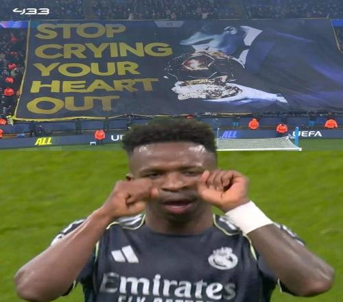 在谈到自己的庆祝动作时,维尼修斯表示:“我上一次来到曼城主场时,他们一直在拿我开玩笑,说我是因为金球奖的事情哭了。这也是我向曼城球迷证明自己的一种方式。”