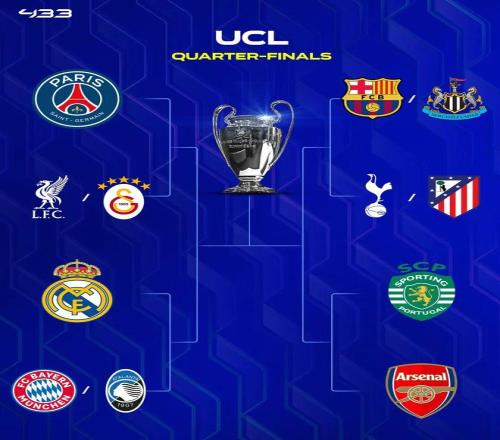 本赛季的欧冠8强已经诞生4支球队,皇马、阿森纳、大巴黎顺利晋级,葡萄牙体育则是回到主场5球逆转博德闪耀,成功晋级。