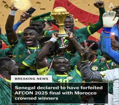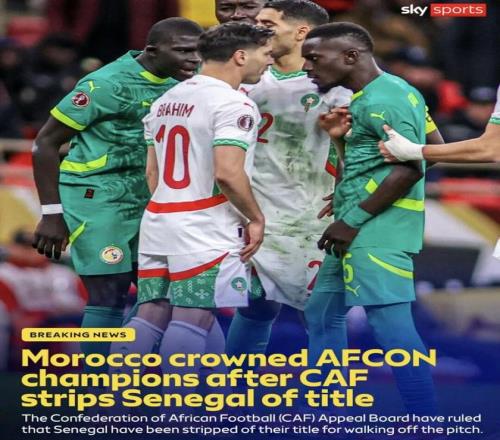 非洲足联官方发布声明,塞内加尔国家队被判在非洲杯决赛中弃权,本场决赛按0-3摩洛哥获胜。