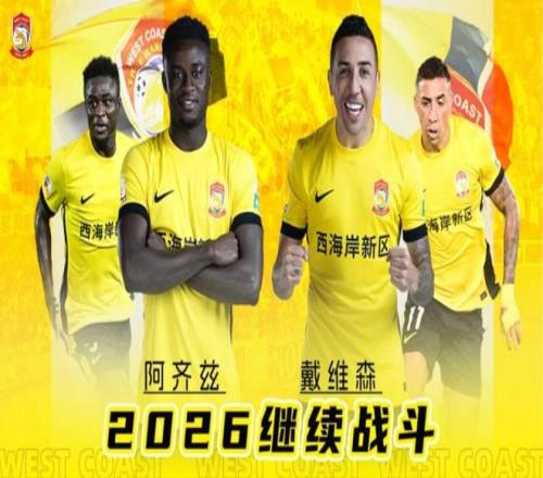 青岛西海岸在俱乐部官方社交账号上官宣,称经友好协商,阿齐兹完成转会加盟,与戴维森正式达成续约留队,新赛季阿齐兹、戴文森将继续身披9号和11号战袍,为青岛西海岸征战赛场。