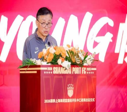 3月14日上午,上海海港富盛经开队(俱乐部B队)2026赛季出征仪式在东方绿舟体育训练基地举行。