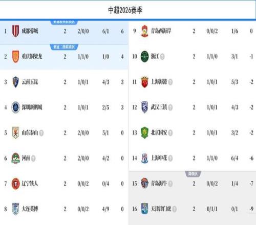 都料到2026赛季中超的争冠和保级形势将大乱,没想到会乱成这个地步。第二轮战罢,中超积分榜乱成糨糊,各队喜欢成双结对。更有趣的是,以往中规中矩的山东泰山,居然也玩起了烟雾弹?而最大的争冠大黑马也浮出水面。