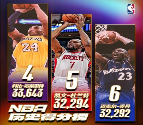 KD总得分超乔丹后还能再升下赛季超科比前3很难
