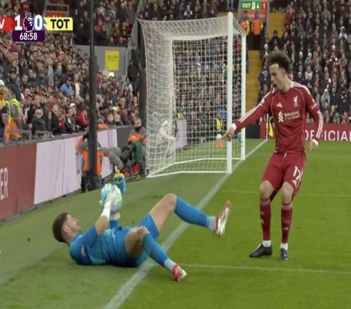 维卡里奥抱球明显滑出底线,裁判却未给利物浦角球