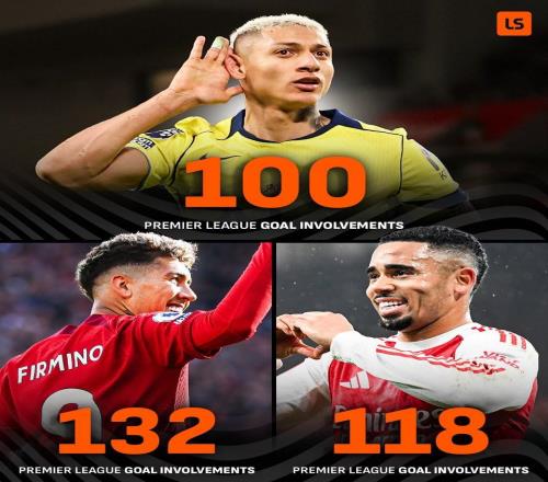 里沙利松已斩获72球27助攻,仅两位巴西球员曾参与英超百球